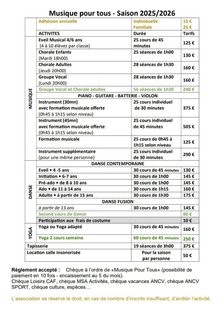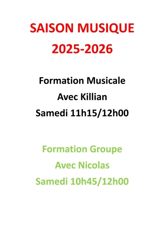 Les cours de formation musicale (45 minutes à 1 heure selon le niveau) permettent d’acquérir les bases essentielles de la musique, de manière simple et ludique.